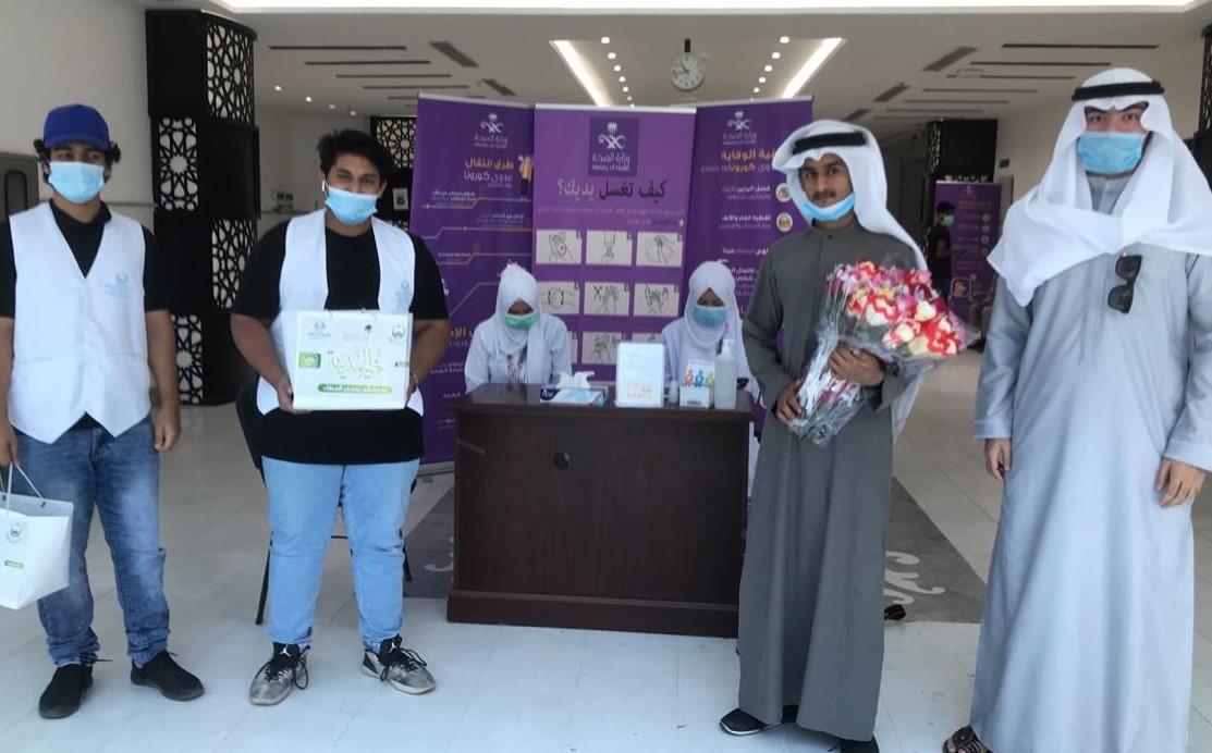 وكذلك عدد من عمال النظافة , حيث تم تقديم 1600 علبة معايدة , وتشمل حلويات وتمور وورود , كتعبير عن الشكر والتقدير لجهودهم الكبيرة في ظل جائحة كورونا .